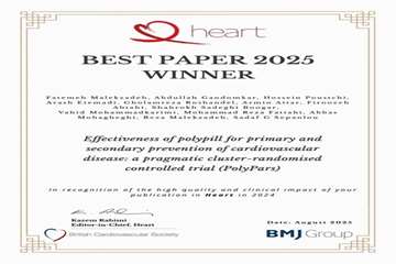 کسب جایزه بهترین مقاله 2025 توسط عضو مرکز بیماری های غیرواگیر در مجله معتبر Heart